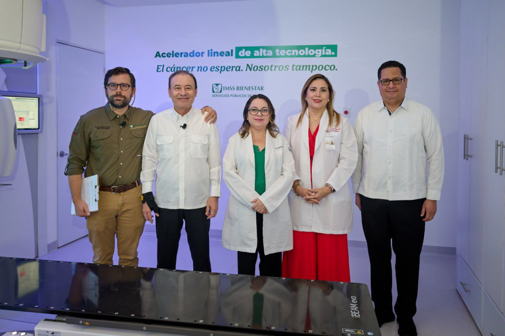 Resaltó que, como parte del fortalecimiento del sistema IMSS-Bienestar en el estado, este equipo considerado el más avanzado en la región noroeste del país, permitirá incrementar la capacidad de atención de 11 mil a 22 mil sesiones de radioterapia, reduciendo el tiempo de espera de seis meses a un mes, lo que representa una oportunidad decisiva para atender de manera oportuna a pacientes con cáncer.