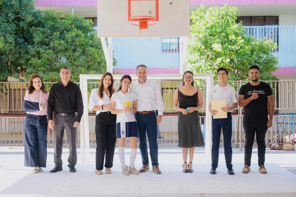 “Fíjense como literalmente nos abrieron la puerta de esta escuela secundaria para cerrarle las puertas a la drogadicción y a las adicciones, y por eso les agradecemos infinitamente”, expresó Toño Astiazarán ante estudiantes, docentes, directivos y padres de familia.