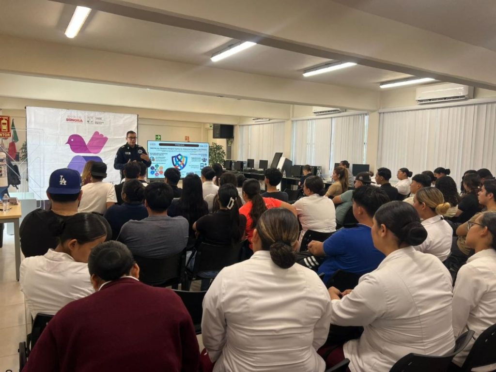 Benito Juárez, Sonora; 17 de abril de 2026.- Por ser la prevención una responsabilidad de todos, la Secretaría de Seguridad y Protección Ciudadana (SSPC) orientó a estudiantes de la Universidad Estatal de Sonora (UES) campus Benito Juárez sobre cómo identificar delitos como la violencia, extorsión telefónica y actividades delictivas a través de redes sociales, ofreciéndoles herramientas para que nos sean víctimas.